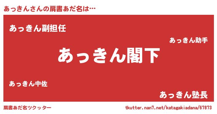 | 意味不明あだ名 | 『自称あっきん』『永久保存あっきん』 |