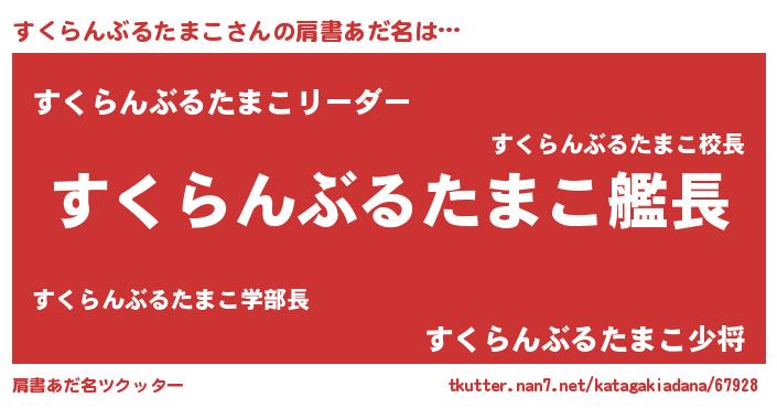 | 意味不明あだ名 | 『とにかく怪しいすくらんぶるたまこ』 |