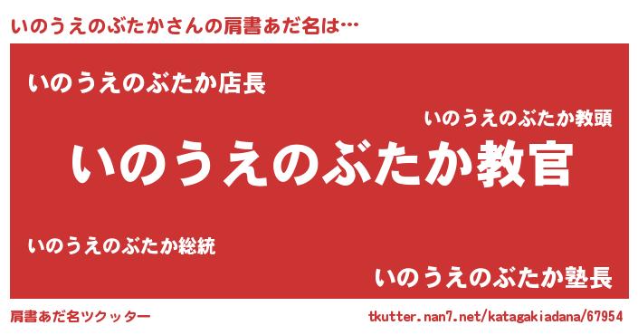 | 胡散臭い通販商品みたいなあだ名 | 『あなたにだけ特別に提供する100年もののヴィンテージワイン…その名も「いのうえのぶたか」』 |