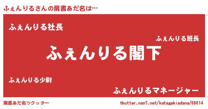 | 欧米人風あだ名 | 『ケンブリッジふぇんりる』 |