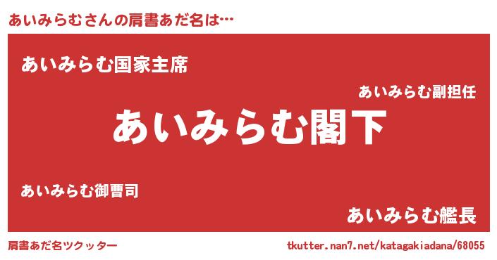 | 男性向けラノベタイトル風あだ名 | 『Re:あいみらむから始める異世界生活』 |