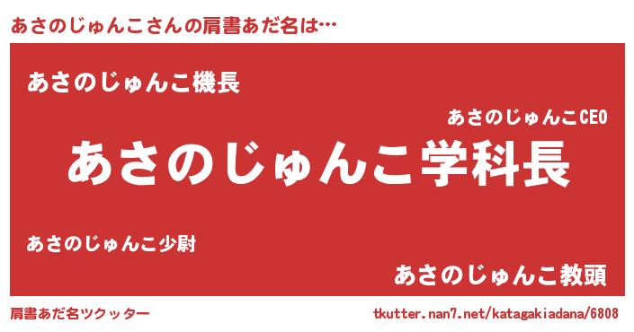 女子向けラノベタイトル風あだ名 | 『死神あさのじゅんこの再婚』 |