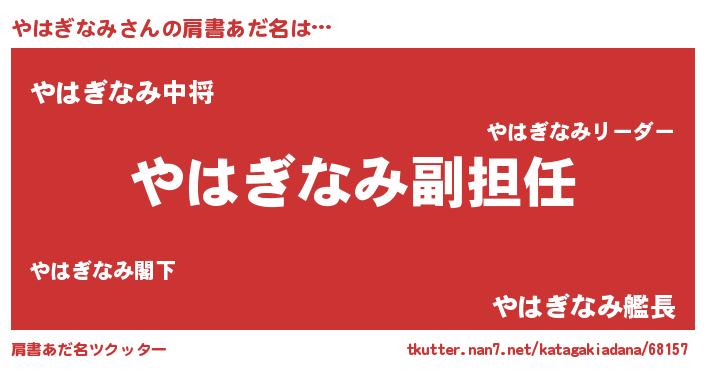 | 意味不明あだ名 | 『永久保存やはぎなみ』『自称やはぎなみ』 |