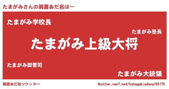 | ヒーロー風カッコイイあだ名 | 『愛の使者たまがみ』『炎刃騎士タマ』 |