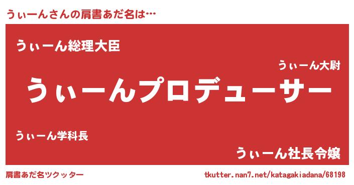 | 男性向けラノベタイトル風あだ名 | 『うぃーんに滅ぼされるだけの簡単なお仕事です』 |