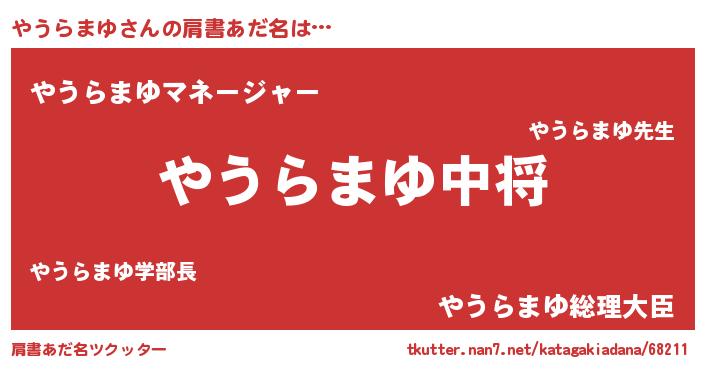 | 男性向けラノベタイトル風あだ名 | 『転生したらやうらまゆだった件』 |