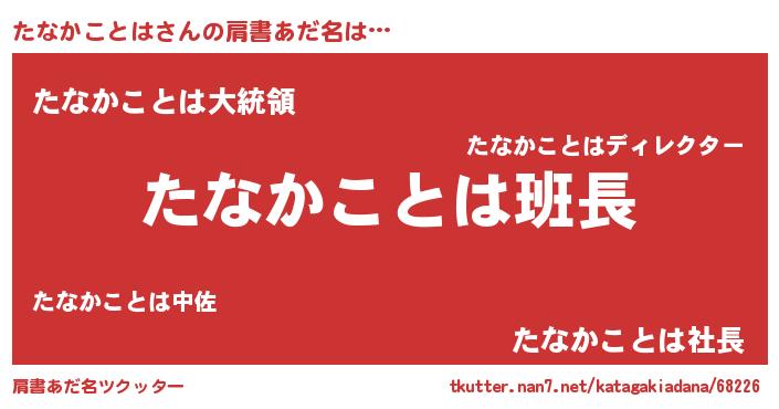 | 女子向けラノベタイトル風あだ名 | 『たなかことはは平凡を望む』 |