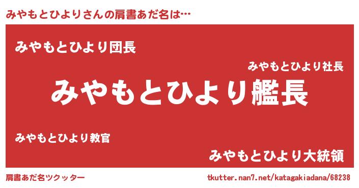 | 欧米人風あだ名 | 『みやもとひより・ステッグマイヤー』 |