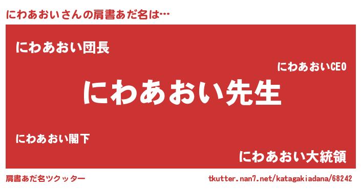 | ヘコむあだ名 | 『にわあおい(小並感)』『にわを』 |