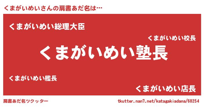 | 意味不明あだ名 | 『とにかく怪しいくまがいめい』 |