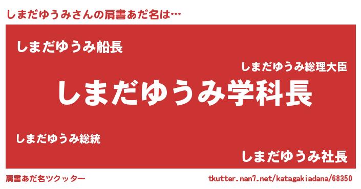 | 男性向けラノベタイトル風あだ名 | 『おまえをオタクにしてやるから、俺をしまだゆうみにしてくれ! 』 |