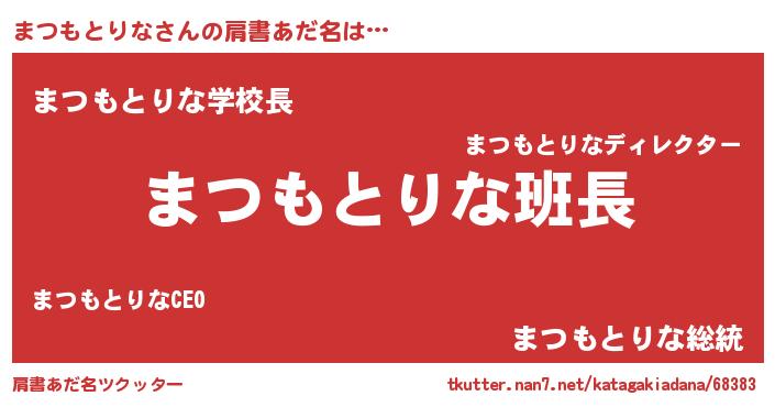 | 意味不明あだ名 | 『とにかく怪しいまつもとりな』 |