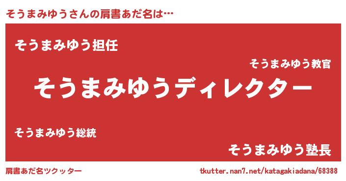 | 男性向けラノベタイトル風あだ名 | 『そうまみゆうに滅ぼされるだけの簡単なお仕事です』 |