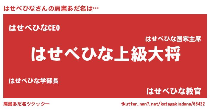 | 女子向けラノベタイトル風あだ名 | 『はせべひなの玉の輿計画!』 |