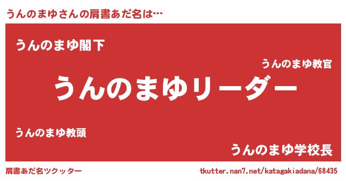 | 女子向けラノベタイトル風あだ名 | 『うんのまゆ様がみてる』 |