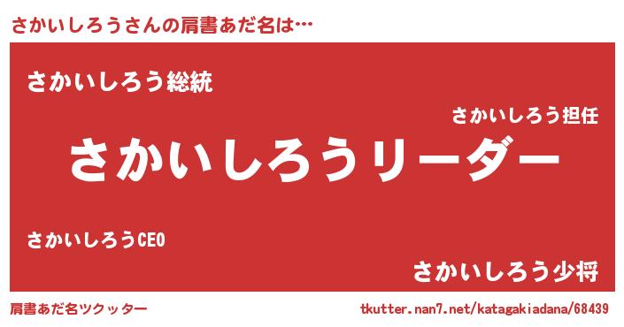 | 意味不明あだ名 | 『とにかく怪しいさかいしろう』 |