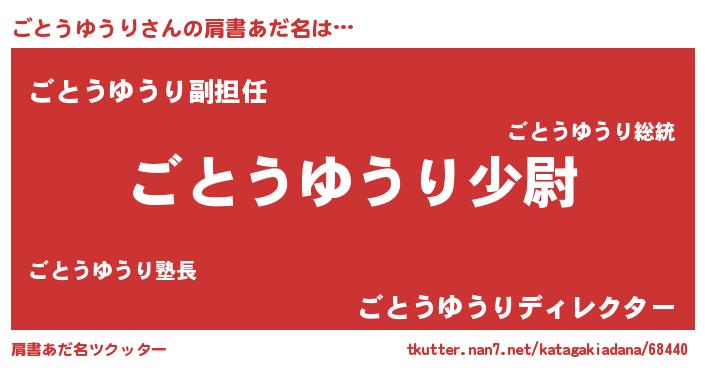 | 男性向けラノベタイトル風あだ名 | 『転生したらごとうゆうりだった件』 |