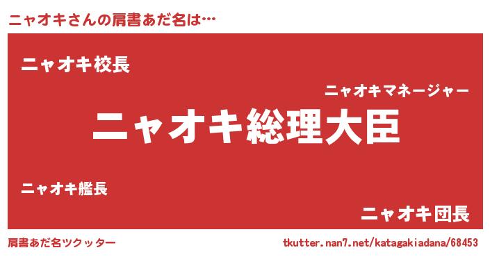 | ファンタジー風あだ名 | 『エターナルニャオキー』『ゼニャトゥ』 |