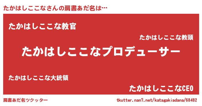 | 男性向けラノベタイトル風あだ名 | 『はたらくたかはしここなさま!』 |