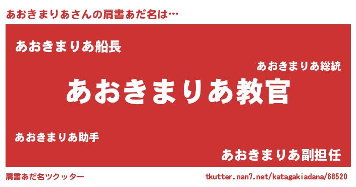 | ヒーロー風カッコイイあだ名 | 『仮面アオダー』『ネオアオキマリア』 |