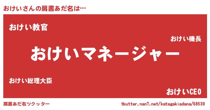 | 意味不明あだ名 | 『住所不定無職おけい(3歳)』『自称おけい』 |