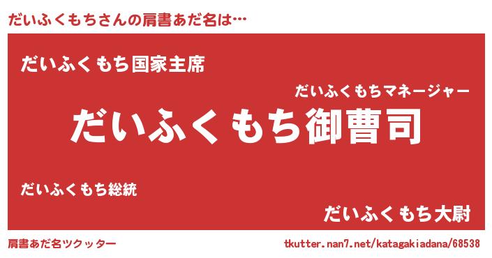 | 男性向けラノベタイトル風あだ名 | 『ダイフクモチアートオンライン』 |