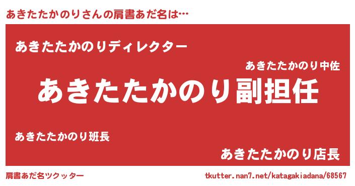 | 男性向けラノベタイトル風あだ名 | 『あきたたかのりという概念が存在しない退屈な世界 』 |