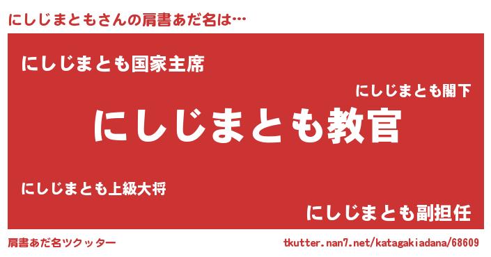 | 意味不明あだ名 | 『住所不定無職にしじまとも(71歳)』 |
