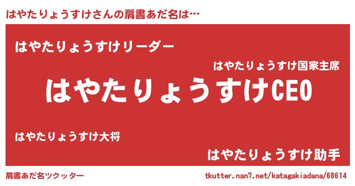 | ポケモン風あだ名 | 『ハヤチュウ』『ヒハヤタリョウスケ』 |