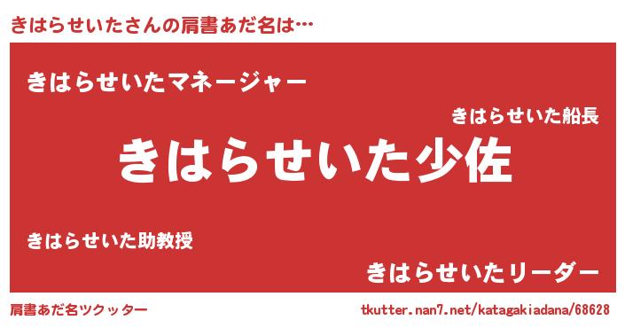 | ヒーロー風カッコイイあだ名 | 『魔戒騎士キハ』『ネオキハラセイタ』 |