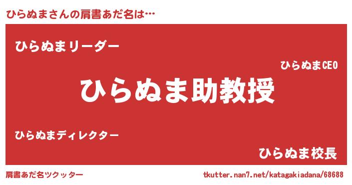| ヘコむあだ名 | 『ひら太郎』『ひらぬま(遠い目)』 |