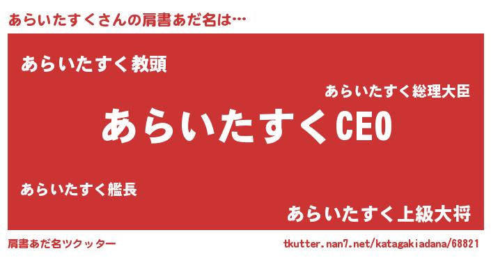 | ヘコむあだ名 | 『あらふぇ~』『あらいたすく(笑)』 |