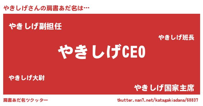 | 欧米人風あだ名 | 『マイケルやきしげ』『ウサインやきしげ』 |