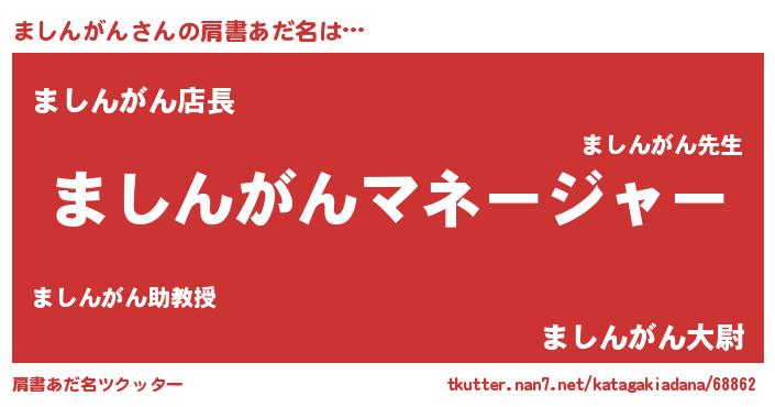 | 胡散臭い通販商品みたいなあだ名 | 『億万長者になれるブレスレット…その名も「ましんがん」』 |