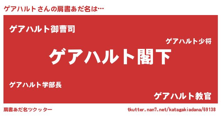 | 女子向けラノベタイトル風あだ名 | 『ゲアハルトなんてお断りですっ。』 |