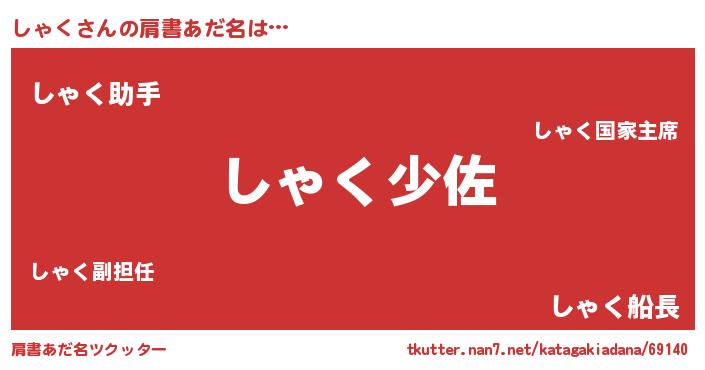 | 男性向けラノベタイトル風あだ名 | 『転生したらしゃくだった件』 |