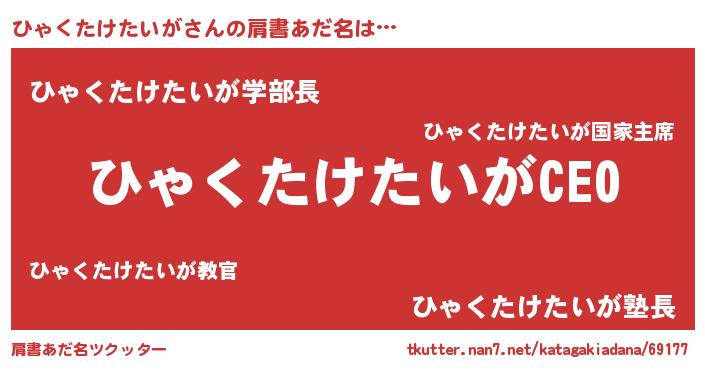 | 胡散臭い通販商品みたいなあだ名 | 『必ず成功するブレスレット…その名も「ひゃくたけたいが」』 |
