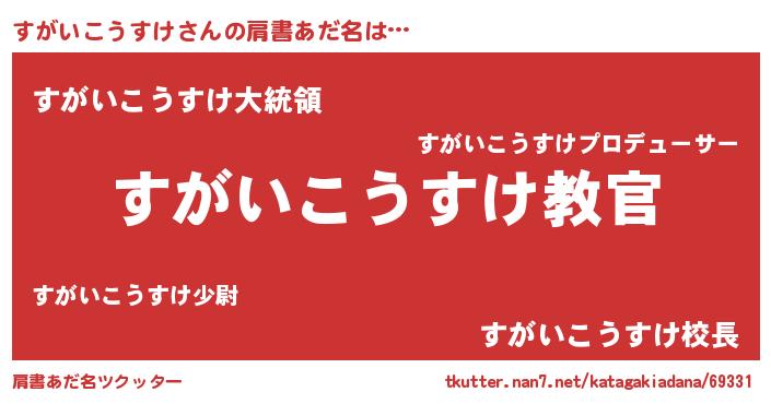 | ヒーロー風カッコイイあだ名 | 『仮面スガダー』『ネオスガイコウスケ』 |