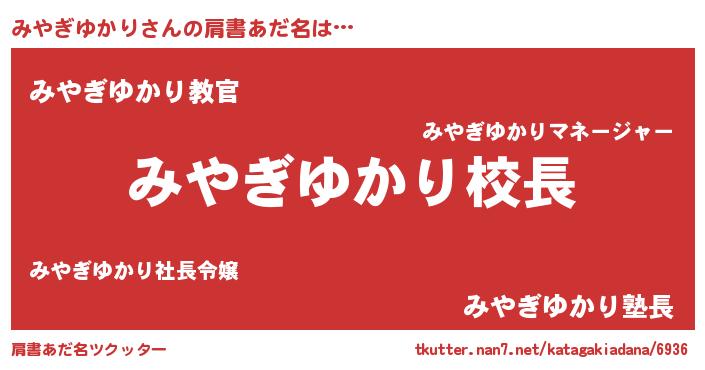 | 男性向けラノベタイトル風あだ名 | 『みやぎゆかりという概念が存在しない退屈な世界 』 |