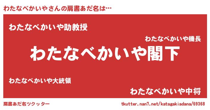 | 意味不明あだ名 | 『自称わたなべかいや』 |