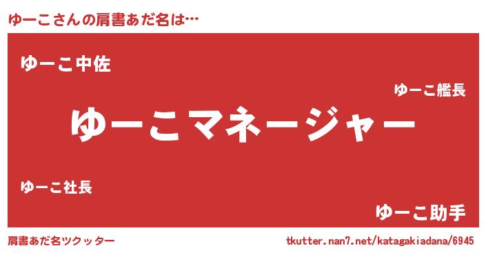 | ピコ太郎風あだ名 | 『ユユ太郎』『ユコ次郎』『ユー一郎』 |