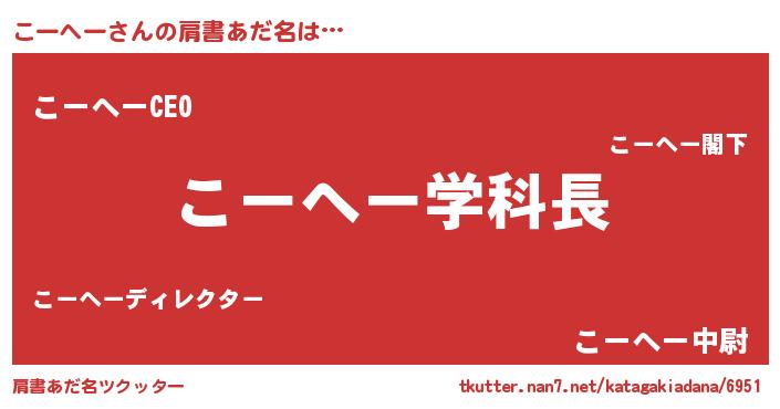 | 欧米人風あだ名 | 『ダニエルこーへー』『マイケルこーへー』 |