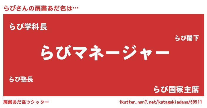 | 意味不明あだ名 | 『眠気覚ましガムらび味』『自称らび』 |