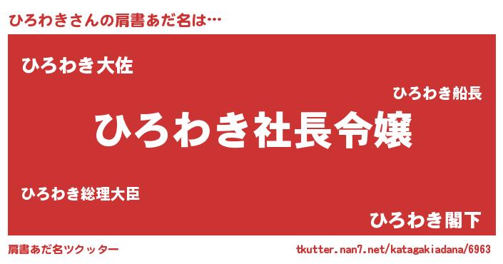 | 男性向けラノベタイトル風あだ名 | 『ひろわきの憂鬱』『ヒロワキスレイヤー』 |
