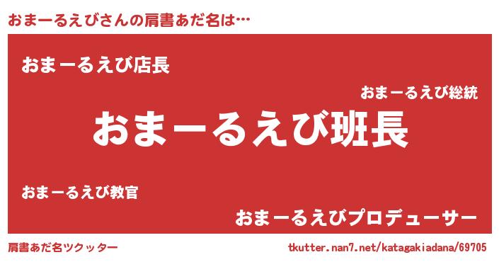 | 男性向けラノベタイトル風あだ名 | 『おまーるえびの嫁は女の子じゃないと思った?』 |
