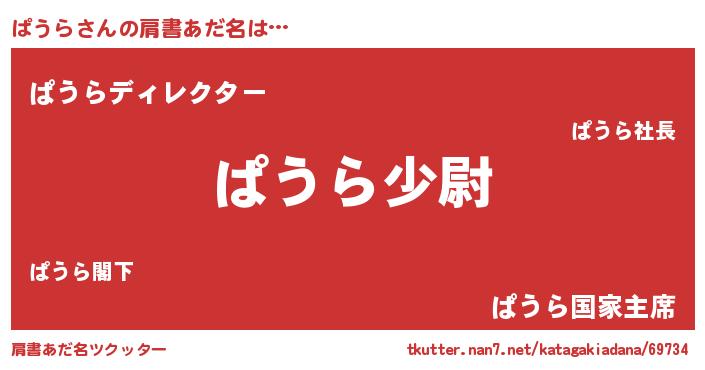 | 男性向けラノベタイトル風あだ名 | 『ぱうら~年齢イコール彼女いない歴の魔法使い~』 |