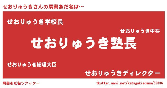 | 男性向けラノベタイトル風あだ名 | 『せおりゅうきの嫁は女の子じゃないと思った?』 |