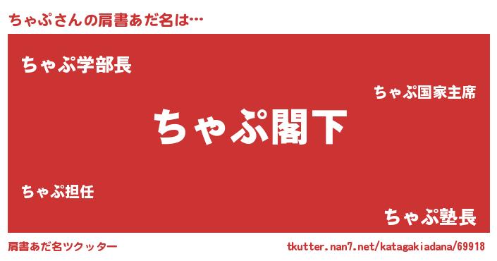 | ヒーロー風カッコイイあだ名 | 『最強戦士チャプ』『慈愛の使者ちゃぷ』 |