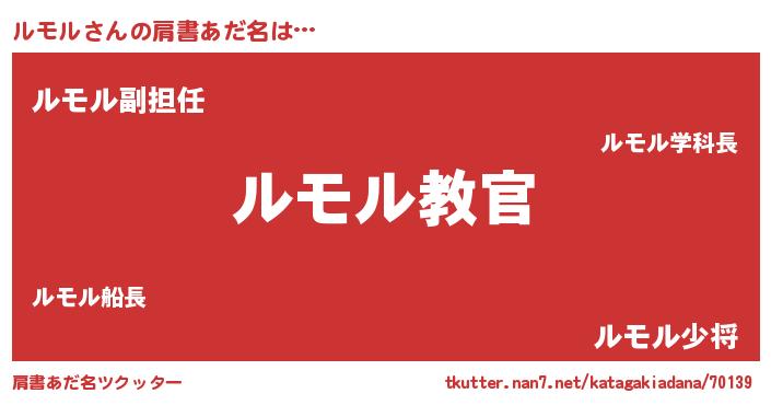| ヘコむあだ名 | 『ルモル(笑)』『ルモぷりん』『牛乳』 |