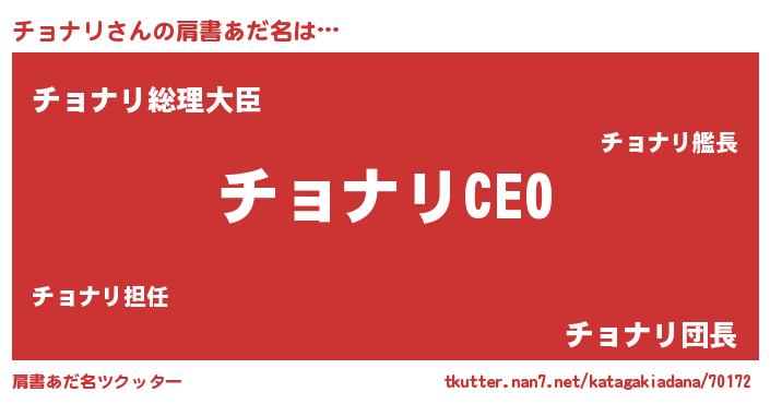 | 男性向けラノベタイトル風あだ名 | 『チョナリの憂鬱』『緋弾のチョナリ』 |